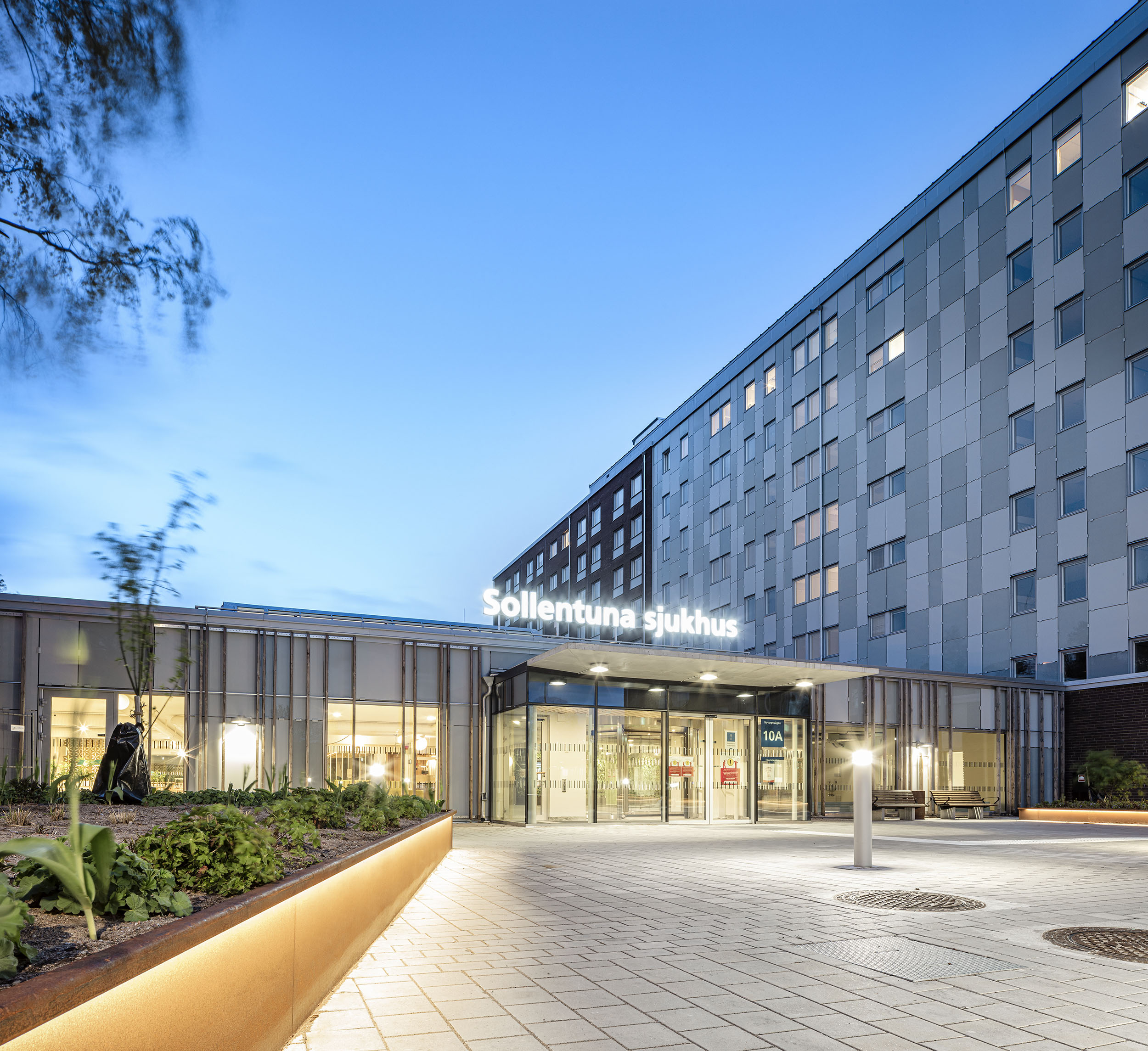 The renovation of Sollentuna hospital should transform the building to be in harmony with the surrounding green environment.